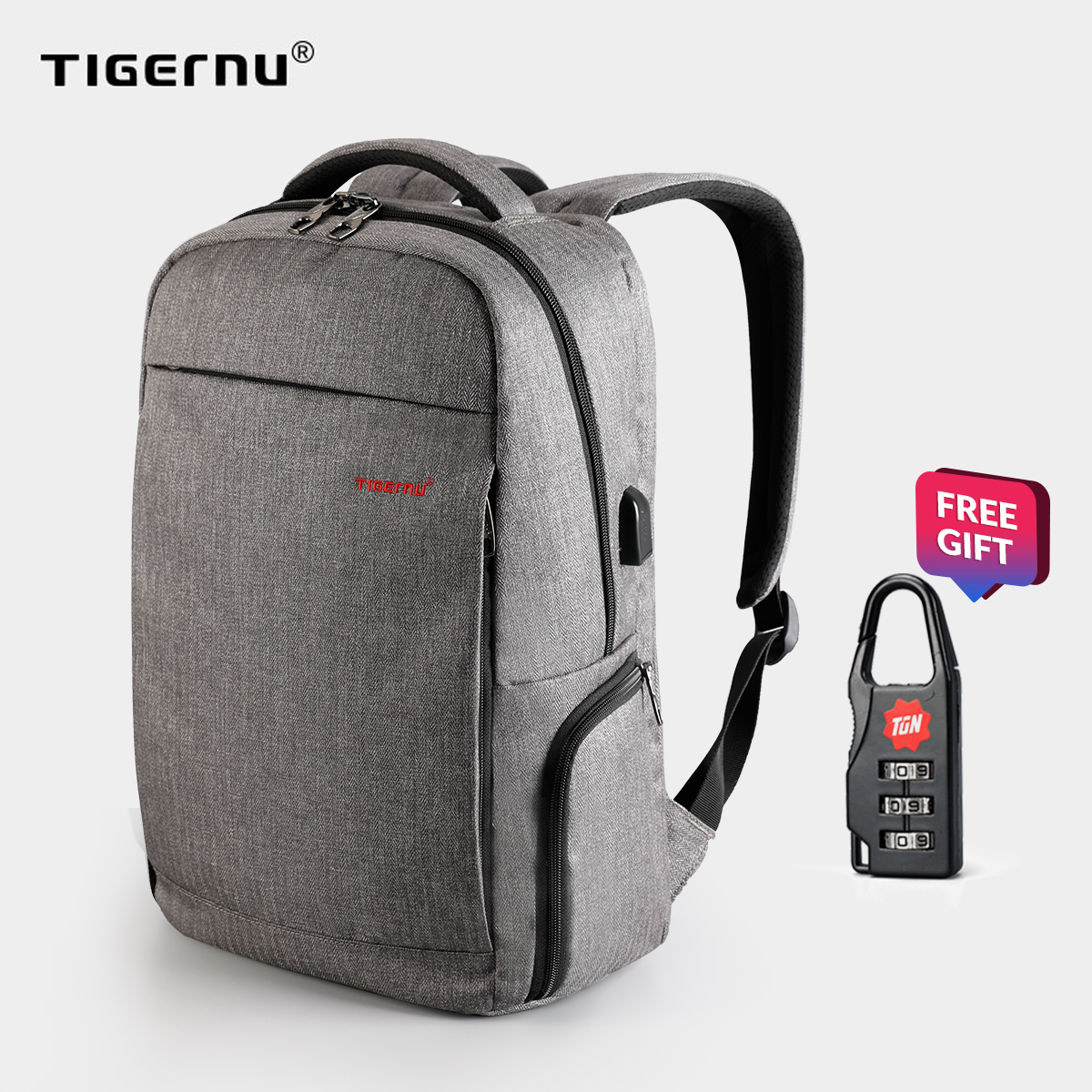 Anti theft backpack Tigernu New Design Anti-theft Waterproof Laptop Backpack Fanshion Men Bags USB Charging Port Business Backpack for Men - intl