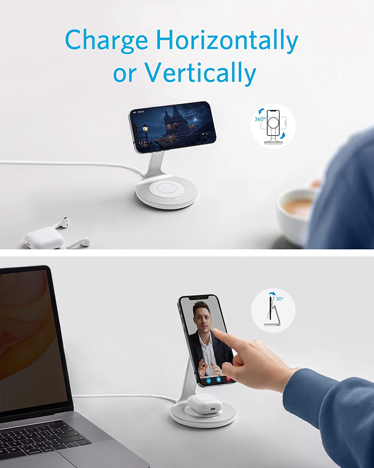 - Leather iPhone cases with MagSafe used with the PowerWave Magnetic 2-in-1 Stand may show compression marks.