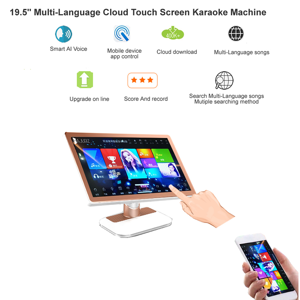 3.Smart AI Order songs,Record and share.The mainboard support two system.Chinese universal system and International system.You could select a suitable one.Universal system could support Simple Chinese,Traditional Chinese,English operation menu and searching.International system support more than 10Countries language menu and searching. Also International system songs category is more than Universal system. Chinese Universal system support Smart AI,Record and share.Score.