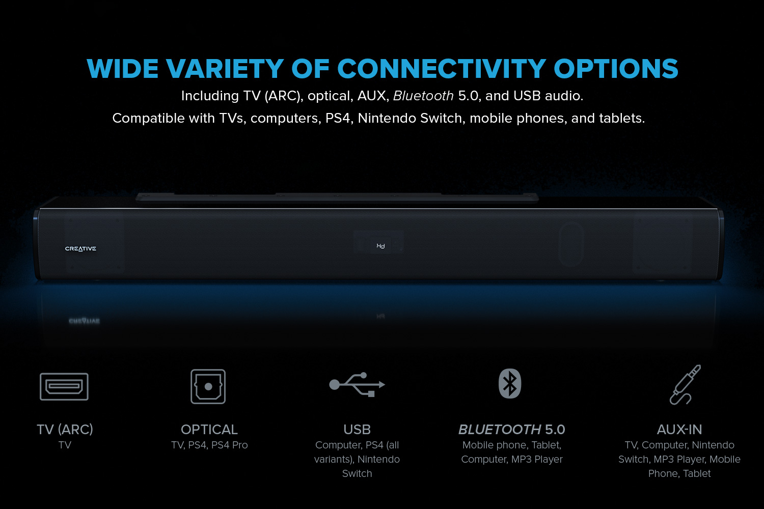 Creative Stage V2 - 2.1 Soundbar with Subwoofer, Clear Dialog and Surround by Sound Blaster, Bluetooth 5.0, TV ARC, Optical, and USB Audio, Wall Mountable, Adjustable Bass and Treble, for TV
