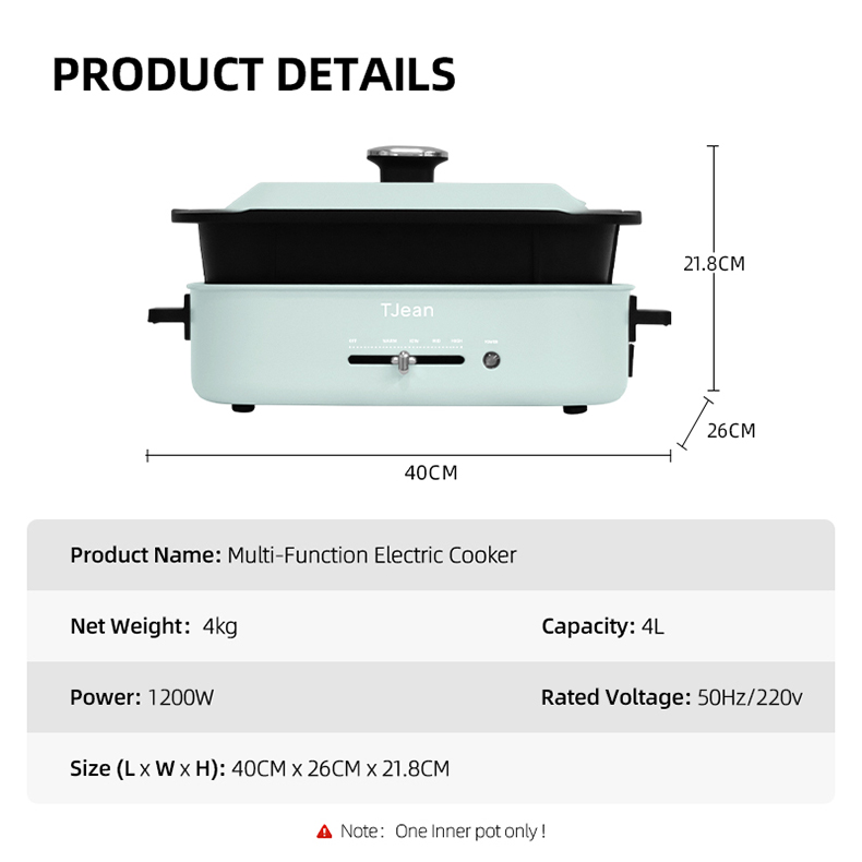 • Versatile Electric Hot Pot - TJean electric hot pot is multiple functional, not only suitable for daily family use but also convenient for gathering with friends. Whether it's sautéing, grilling, shabu-shabu, or steam-ing and hot pot, all dishes can be easily mastered at your fingertips. The unique shape with modern styl-ing adding luxury to your kitchen.