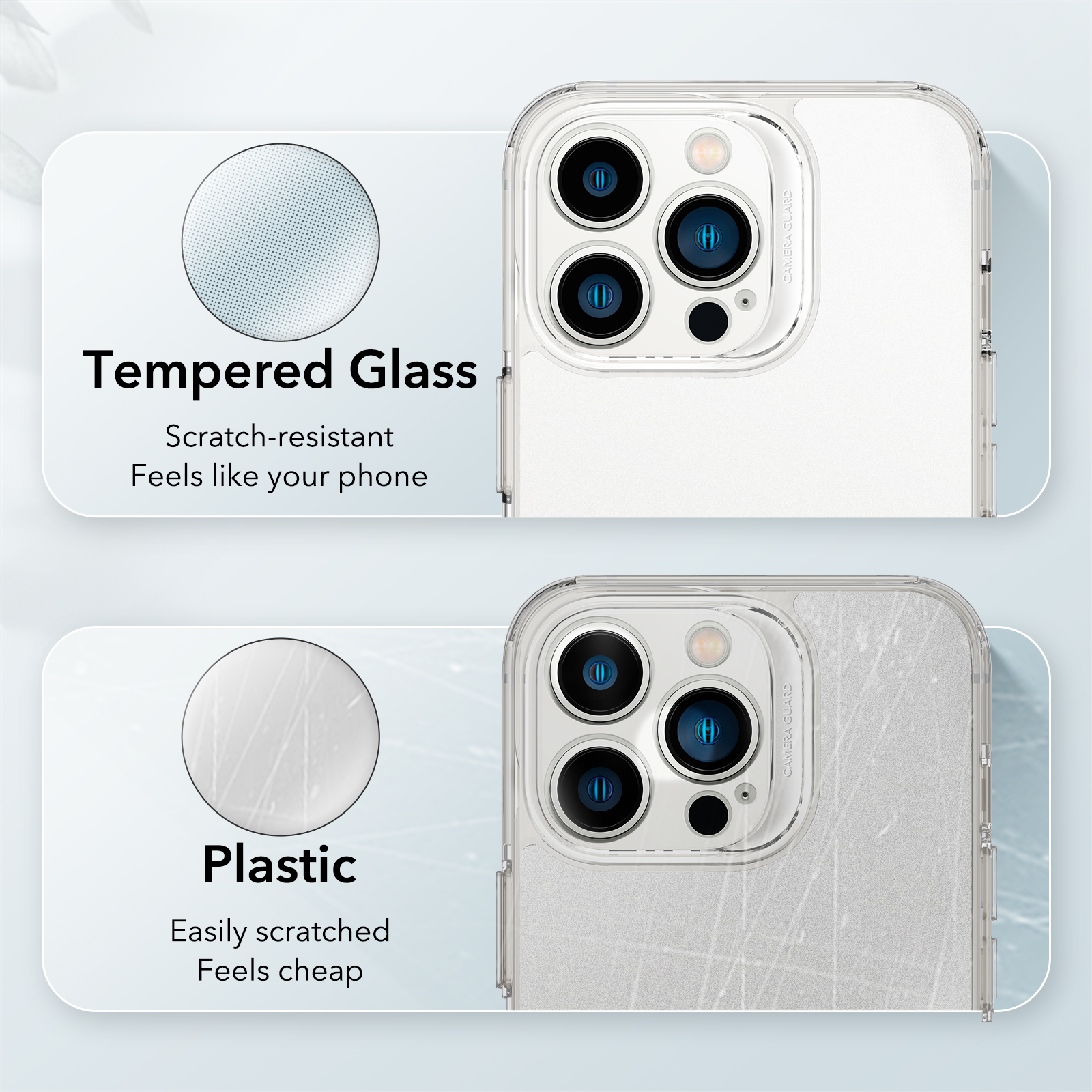 Apple iPhone 13 / 13 Pro / 13 Pro Max Ice Shield Clears absolute clarity with the scratch less finish due to glass being present on the back. You feel the clear glass at all times that doesn’t yellow with time as well.