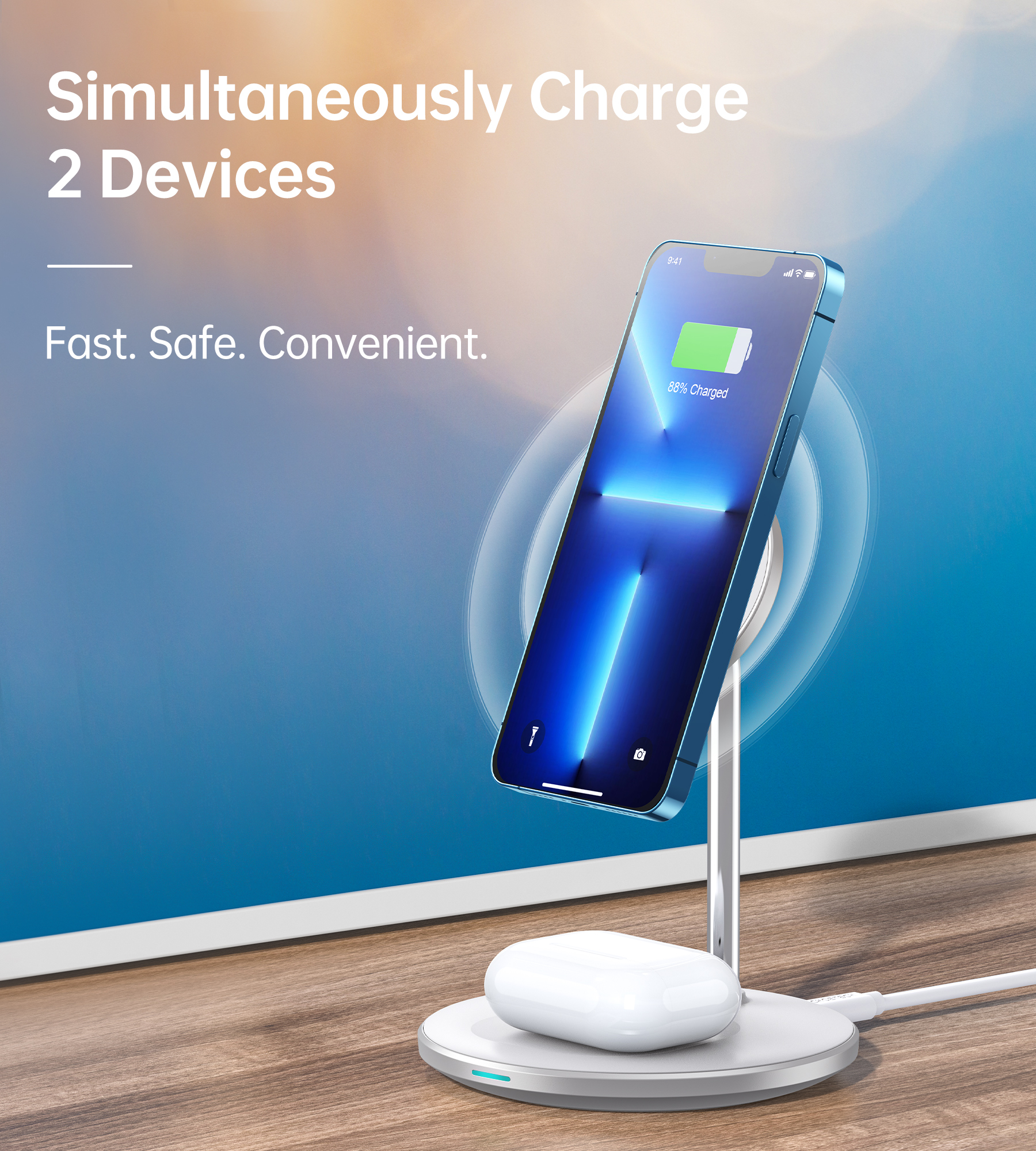 This magnetic iPhone charger station supports charging only for iPhone 13/13 Pro/13 Pro Max/13 mini 12/12 Pro/12 Pro Max/12 Mini and Airpods / Airpods pro / Samsung buds without connecting any extra cables.