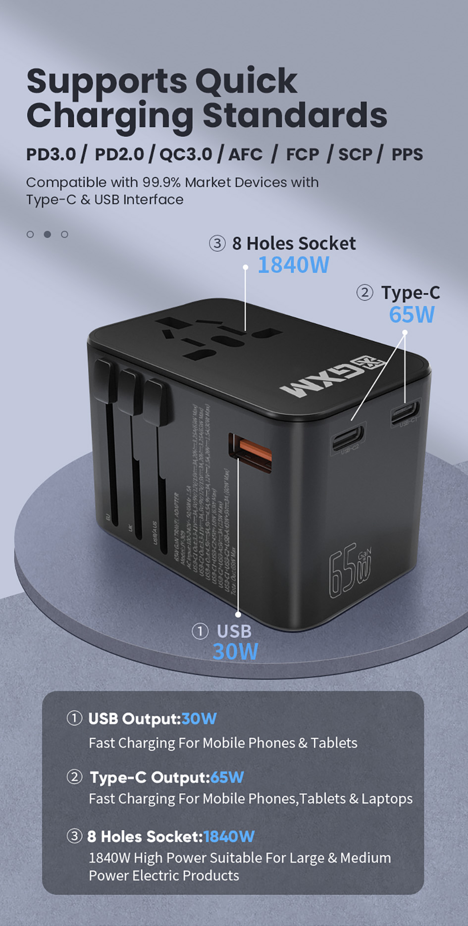 - Fast Charging Ports up to 65W Output