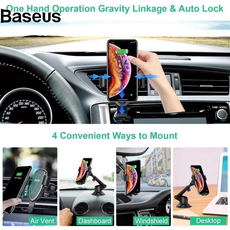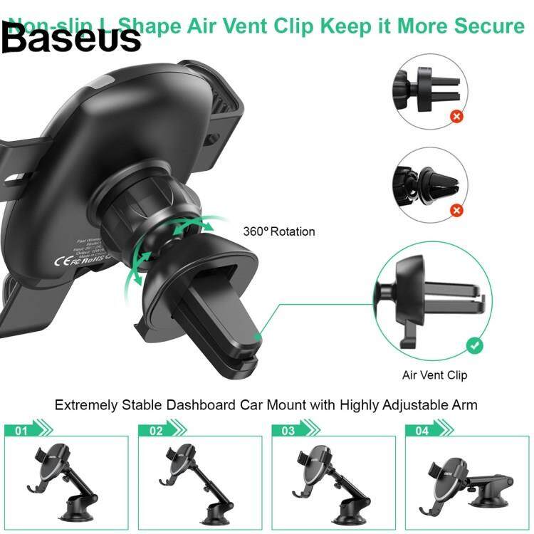 Baseus CHOETECH T536-S 10W Wireless Charger Gravity Auto Clamping Suction Cup Mount Phone Holder with Air Vent Clip