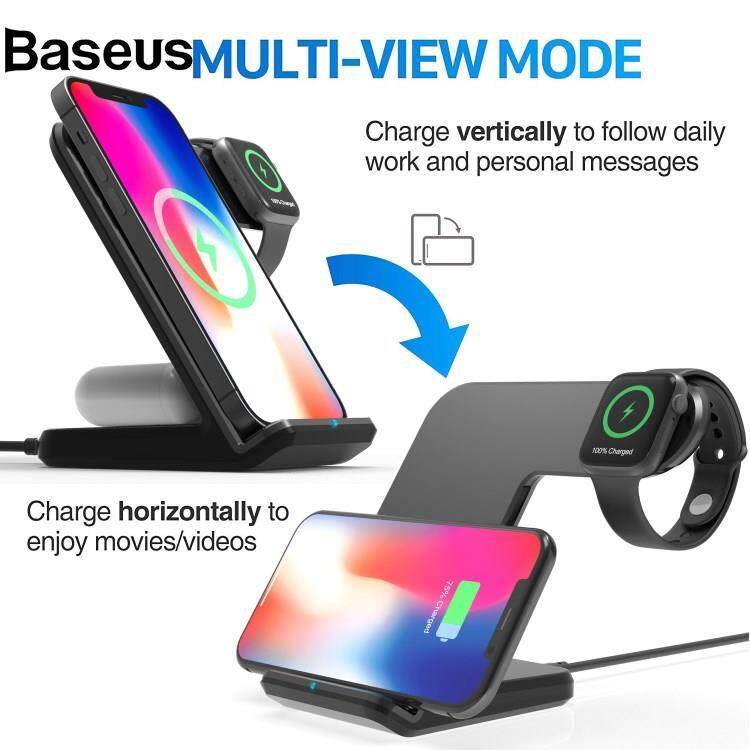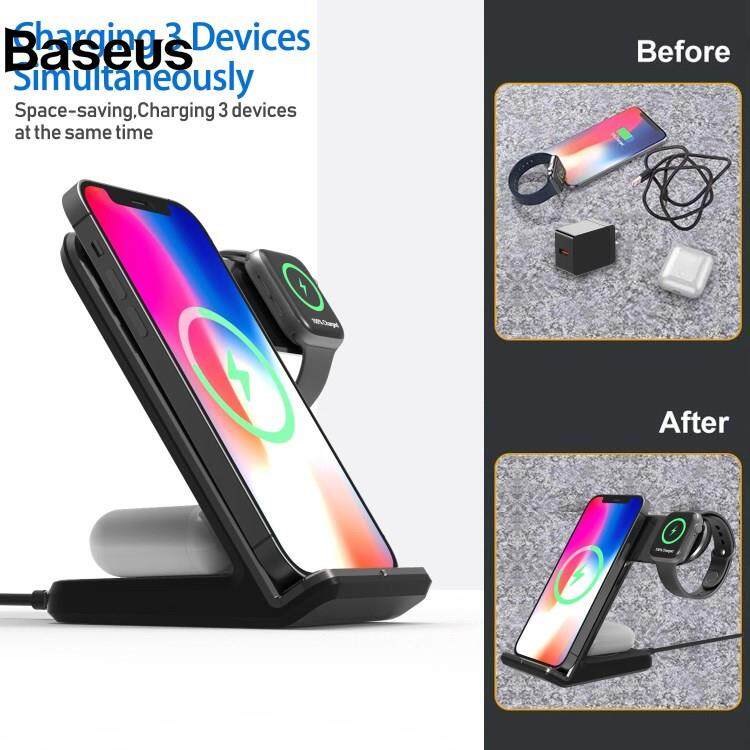 Baseus W-02 3 in 1 15W Wireless Charger for iPhone 13/12 Series/AirPods Pro Portable Charging Dock for Apple Watch