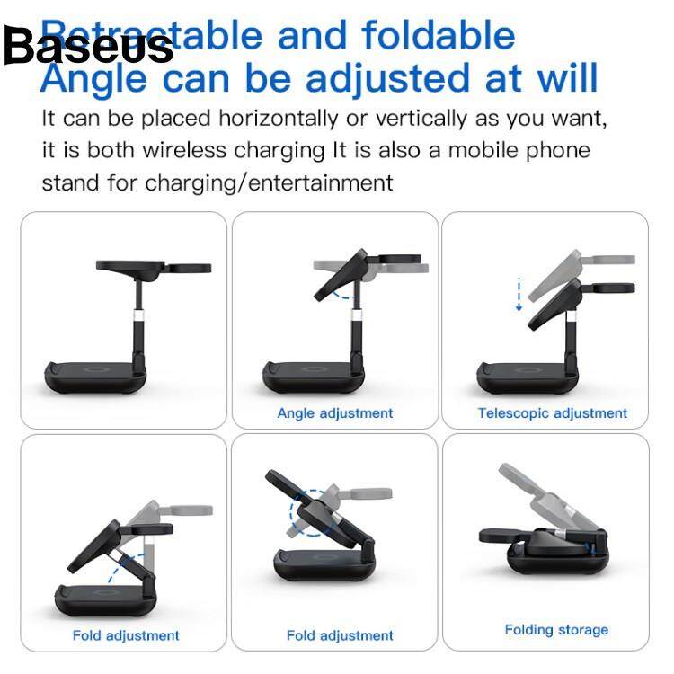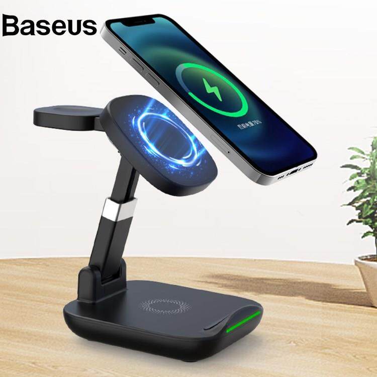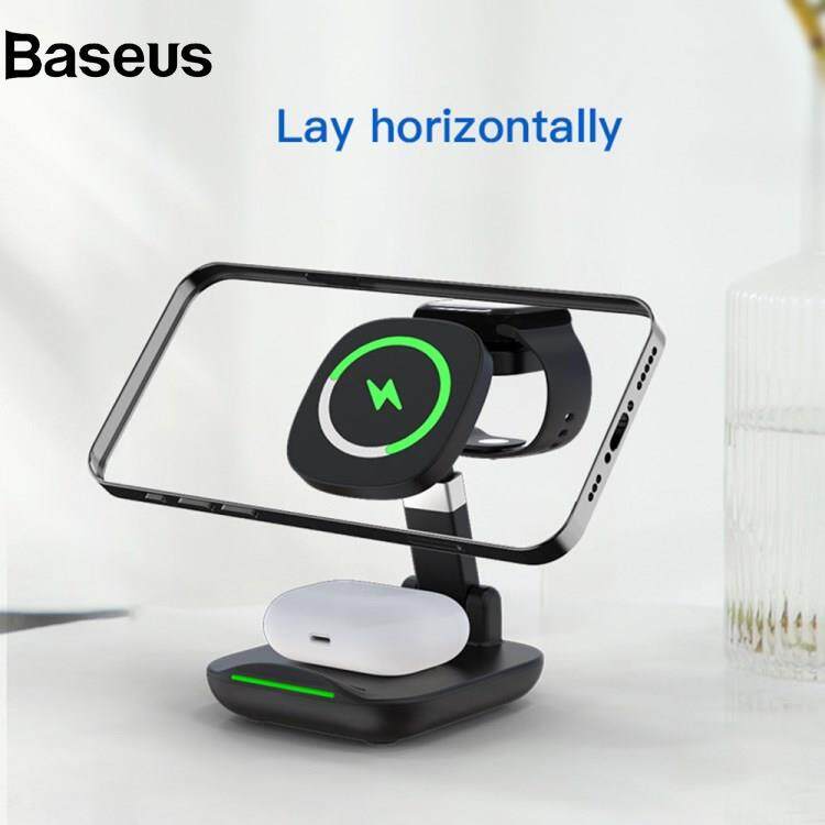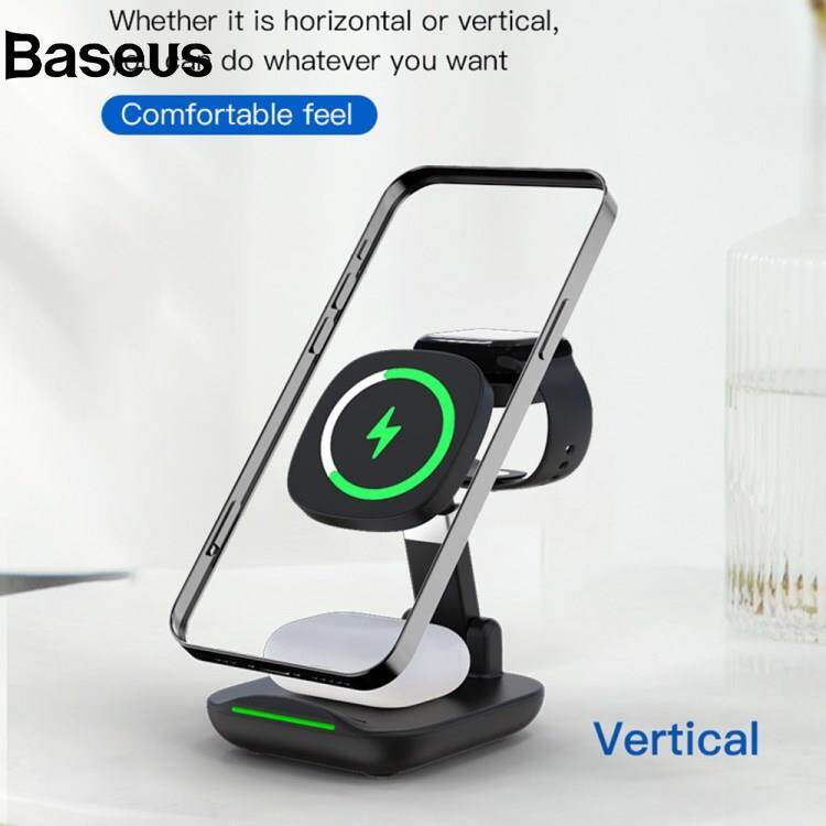 Baseus YF-T9 3-in-1 15W Magnetic Wireless Charger Cellphone Smartwatch Earphone Fast Charging Dock Stand