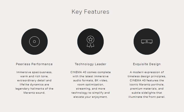 - The Marantz Sound Master meticulously tuned CINEMA 40 for amazing performance with careful parts selection to create the Most Musical Sound in your home.