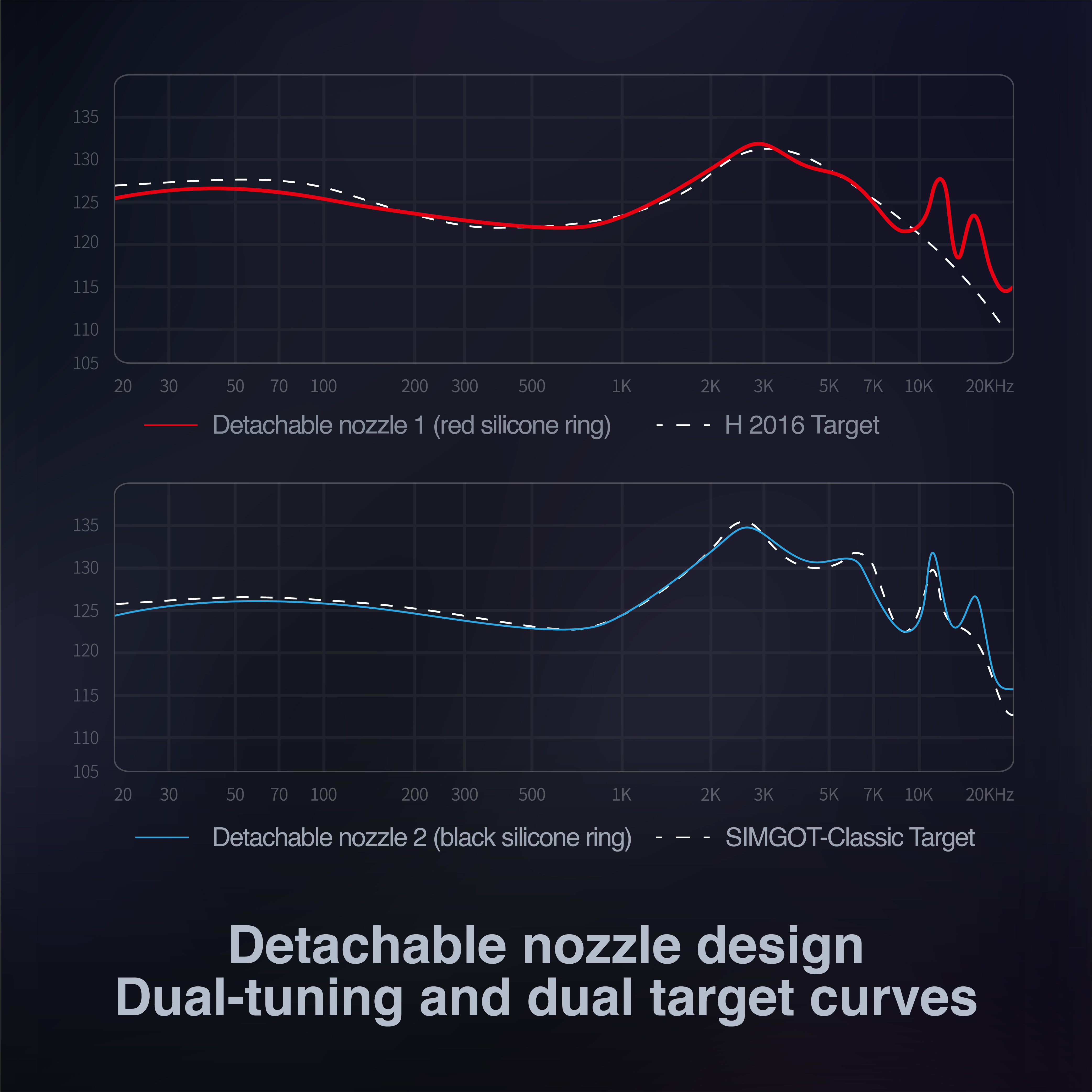 • ♫【Detachable Nozzle Design & Two Target Curves】By quickly disassembling and installing the nozzles of different tuning cloth systems, the user can obtain two different curves of high completion degree. When the filter is blocked after a long time wearing, users can replace the filter themselves, which can extend the service life of the product and increase the scope of adaptation.