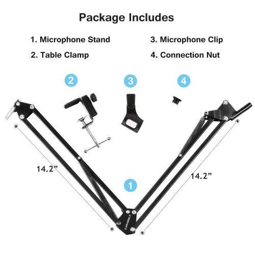 Earamble Tabletop Microphone Stand Telescopic Desk Arm Holder with Flexible Arm Clamp