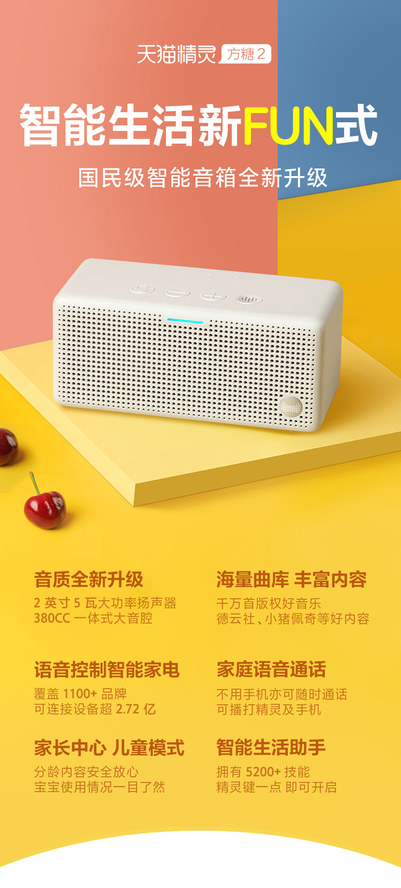 【天猫精灵第五代】2020最新款 Original Tmall Genie 2 AI Smart Wireless Bluetooth Speaker 原装正品天猫精灵 方糖2 智能音箱蓝牙音响智能闹钟
