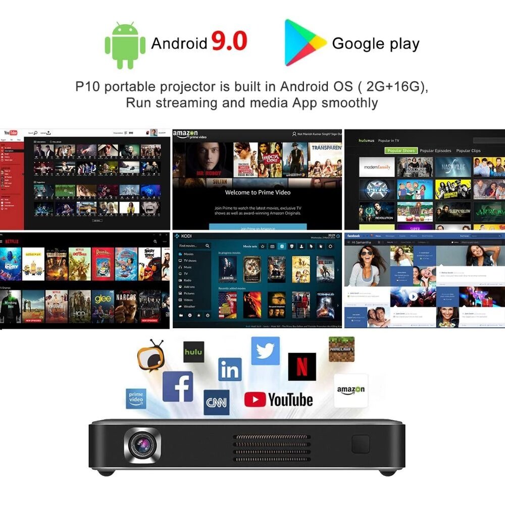 Rafale P10 II Smart Android 9.0 DLP 3D Projector WiFi Bluetooth 4.0 Portable Movie Home Cinema Support 4K Airplay