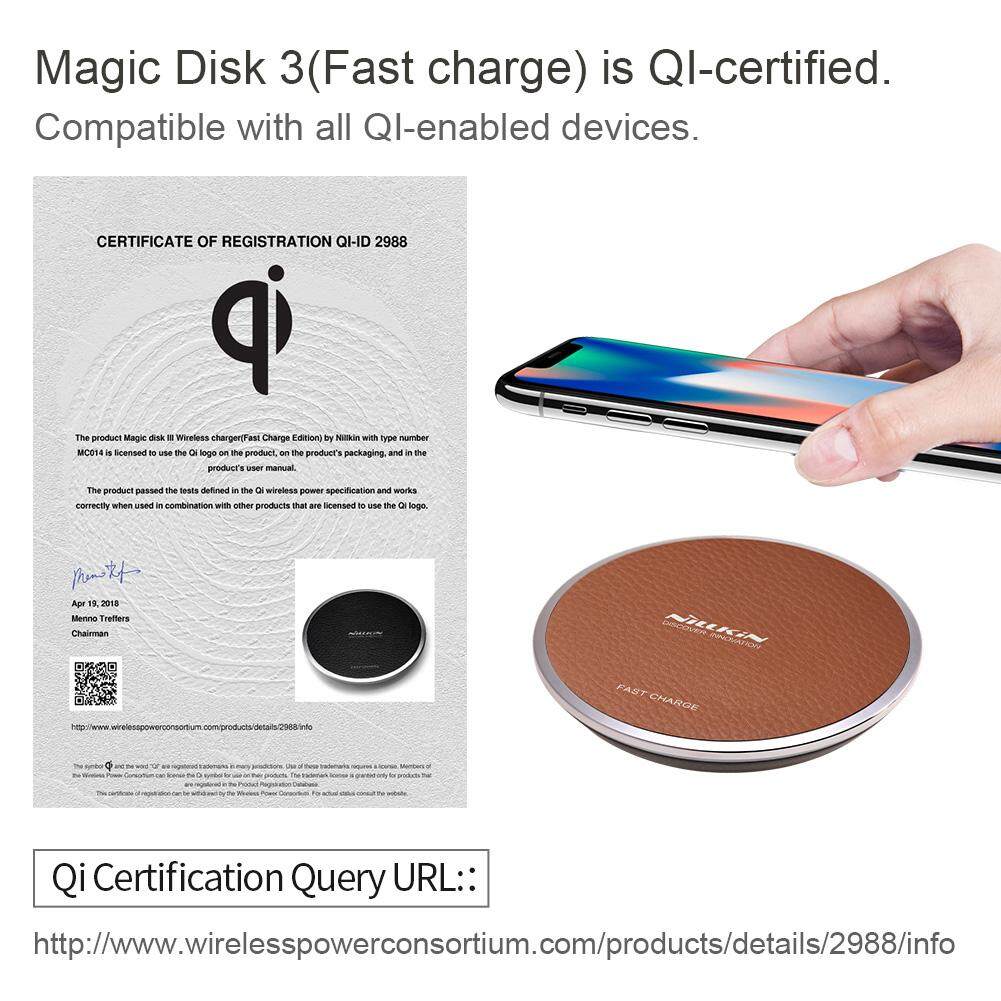 NILLKIN Fast 10W Qi Wireless Charger - Magic Disc 3rd Generation Charging Pad Classic Leather Surface for Huawei Mate 20 Pro IPhone X Xs Max Samsung Note 10 S10 S10+